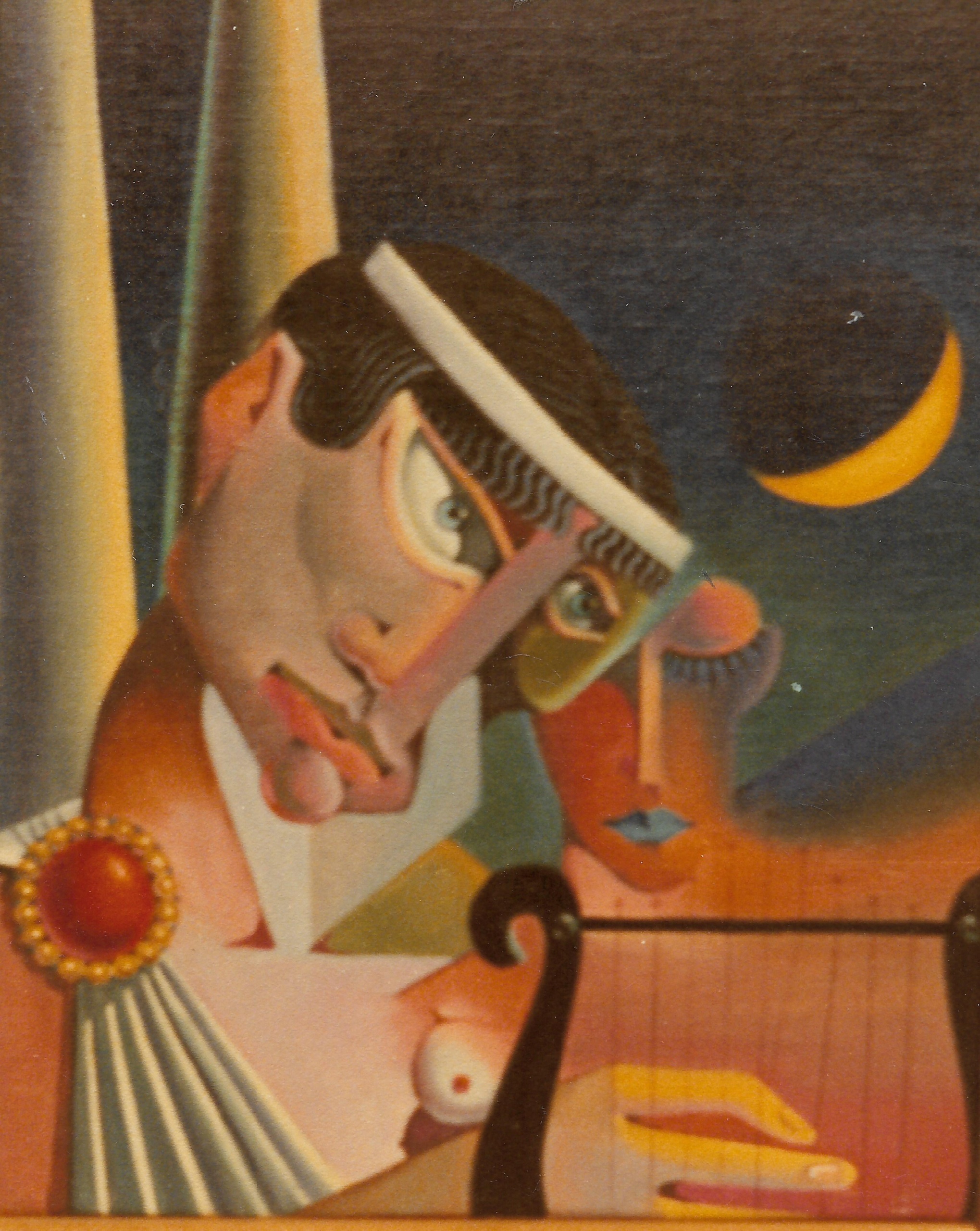 Η πρώτη εκδοχή του 1973 κινείται σε ένα πιο γεωμετρικό, σχεδόν κυβιστικό ύφος. Σε πρώτο πλάνο βλέπουμε τον Απόλλωνα, θεό του φωτός, προστάτη των τεχνών και της μαντείας, να παίζει κιθάρα απαρηγόρητος κάτω από το μισοφέγγαρο στην αγαπημένη του Δάφνη, της οποίας τα χαρακτηριστικά διακρίνονται στο βάθος. Η Δάφνη δεν αισθάνεται τίποτα για τον Απόλλωνα καθώς ο Έρωτας της έστειλε βέλος από μολύβι κάνοντας την καρδιά της πέτρα (μπλε χείλη, μάτια ερμητικά κλειστά).